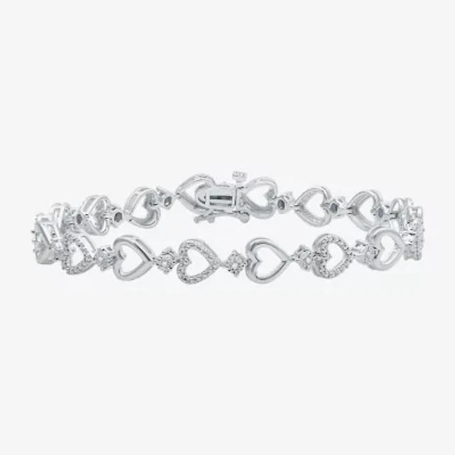 Previously Owned Diamond Heart Bracelet 1/20 ct tw Round-cut Sterling Silver 7.25"
