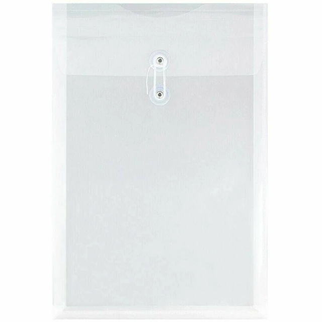 JAM Paper Large Clear Square Plastic Envelopes with Button & String Tie Closure, 12ct.