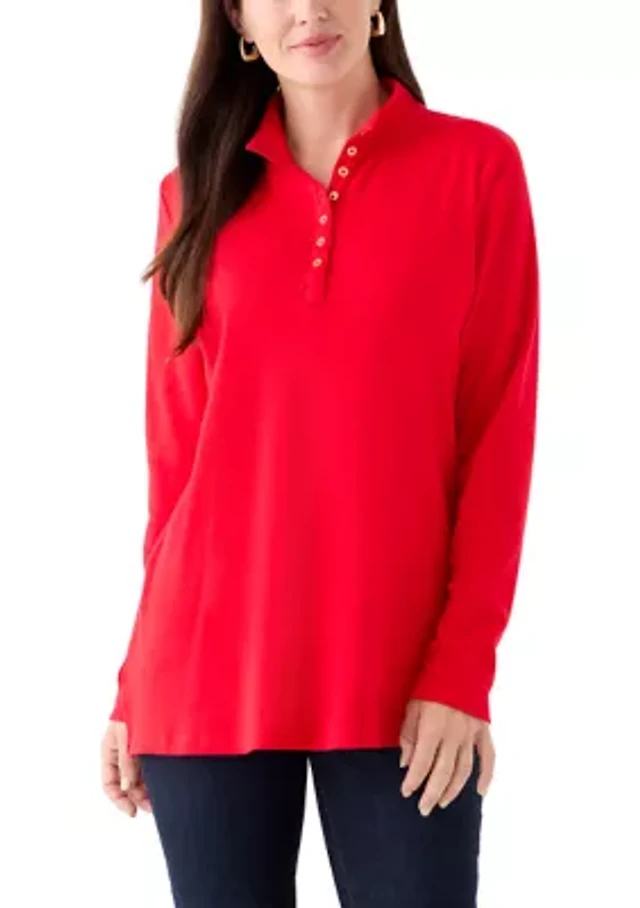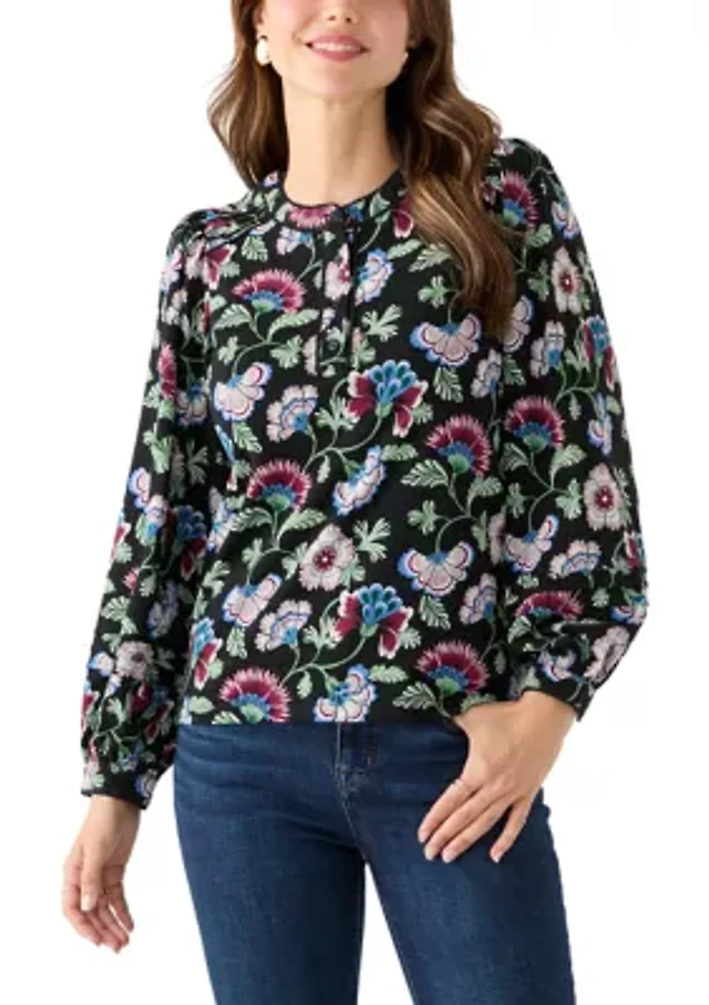 Women's Long Sleeve Pintuck Henley Solid Blouse