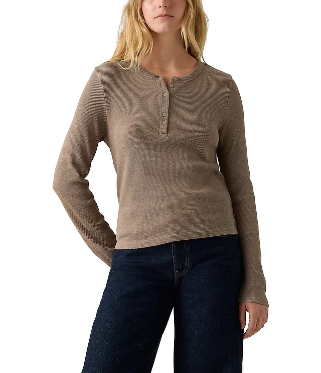 Women's Split Neck Long Sleeve Textured Henley Shirt