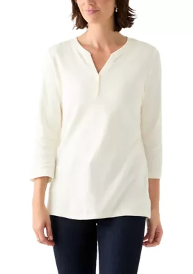 Westbound Petite Size Knit Elbow Sleeve Henley Top