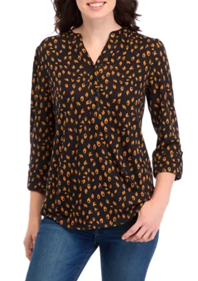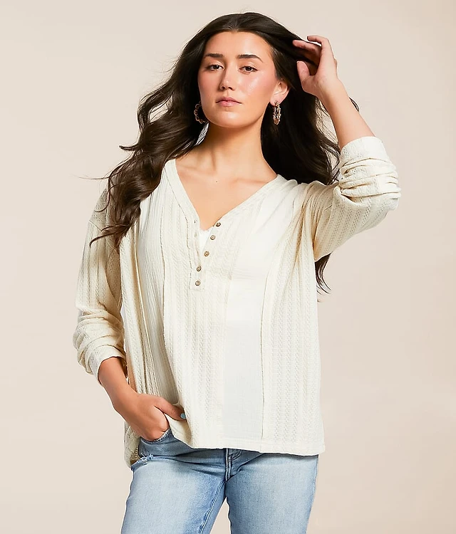 Plus 3/4 Sleeve Sharkbite Hacci Henley Shirt