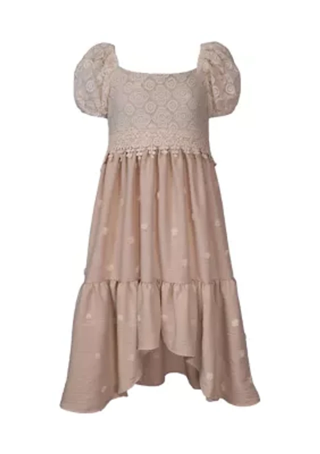 Girls 7-16 Puff Sleeve Lace High Low Dress