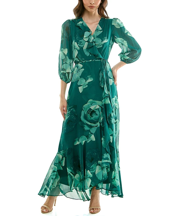 Moda Tara Yoryu Chiffon Floral Print Ruffle High Low Dress