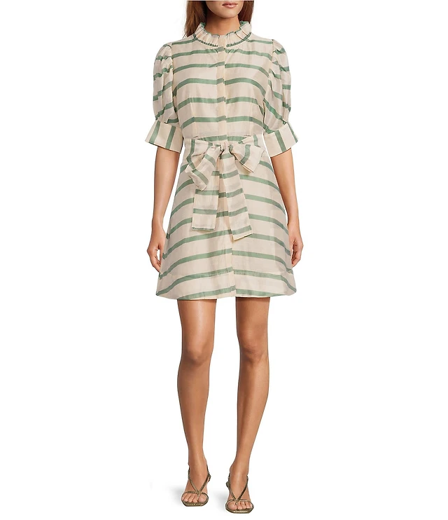 Buru Puff Sleeve Banded Ruffle Collar A-Line Mini Dress