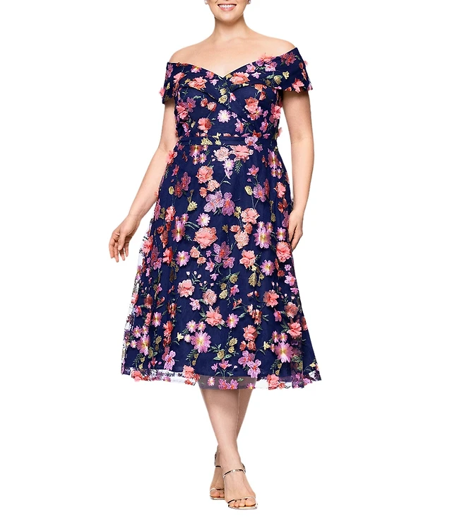 Melonie T Womens Plus Long Sleeve Geometric Midi Fit + Flare Dress