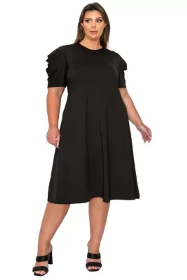 BCBG Collard Short Sleeve Fit & Flare Dress