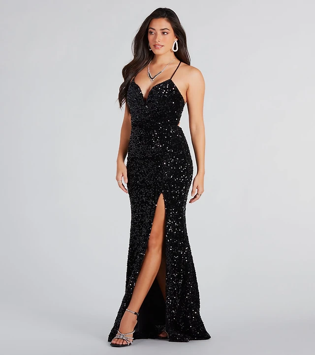 Giselle Formal Sequin Velvet Lace-Up Dress