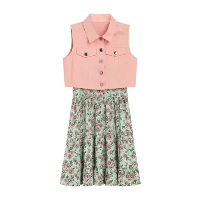 Girls 7-16 Knee Length Button Front Dress