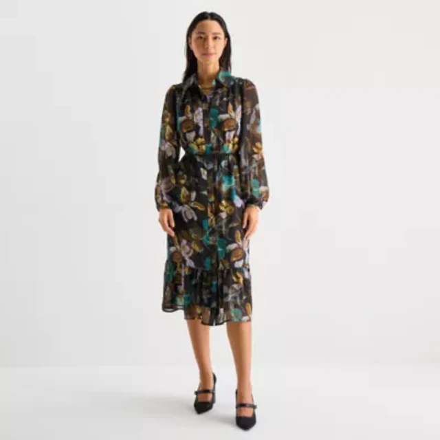 Maia Womens Long Sleeve Belted Midi Sweater Dress