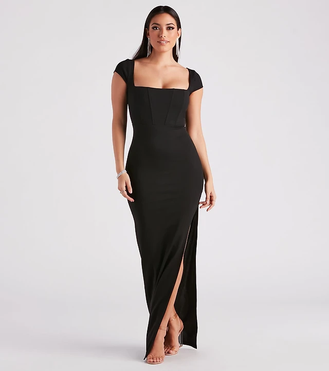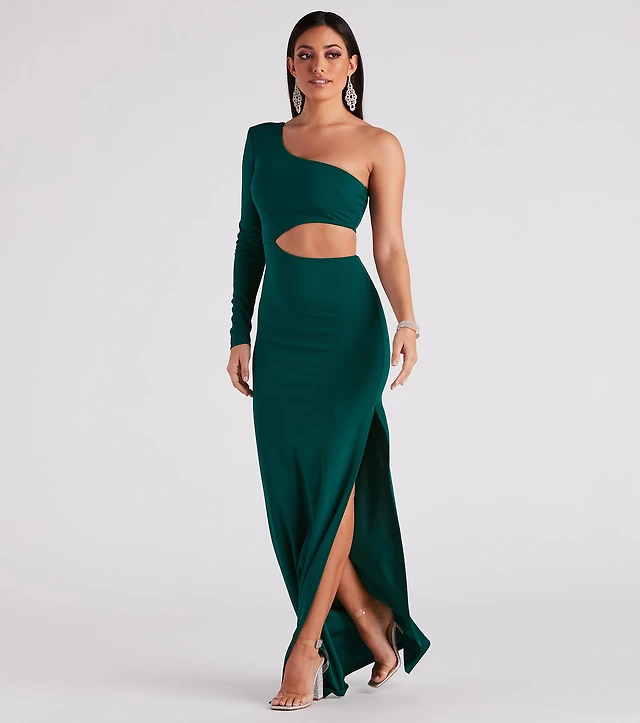 Marina Scuba Crepe One Shoulder Ruffle Front Dress