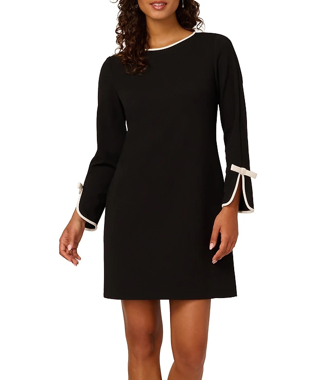Adrianna Papell Crepe Long Sleeve Bow Sheath Dress