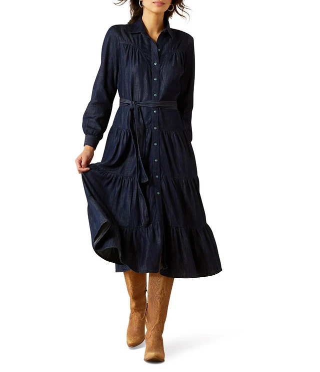 Donna Karan Button Front 3/4 Sleeve Belted Midi Shirt Dress