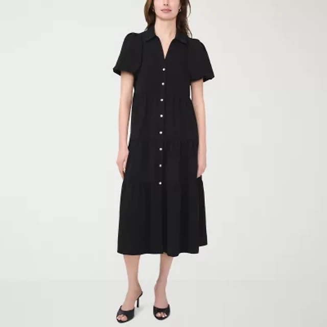 Clover And Sloane Womens Short Sleeve Midi Sheath Dress