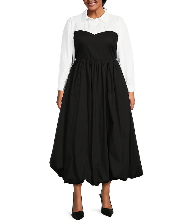 Sugarlips Plus Size Long Sleeve Color Block Bubble Hem Long Dress