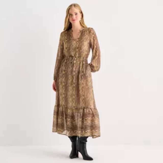 a.n.a Womens Long Sleeve Animal Maxi Dress