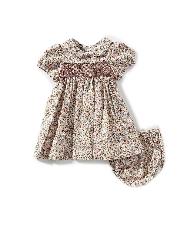 Edgehill Collection Baby Girls Smocked Peter Pan Collar Floral Dress