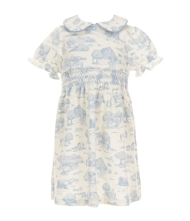 Edgehill Collection Little Girls Smocked Toile Peter Pan Collar Cap Sleeve Dress