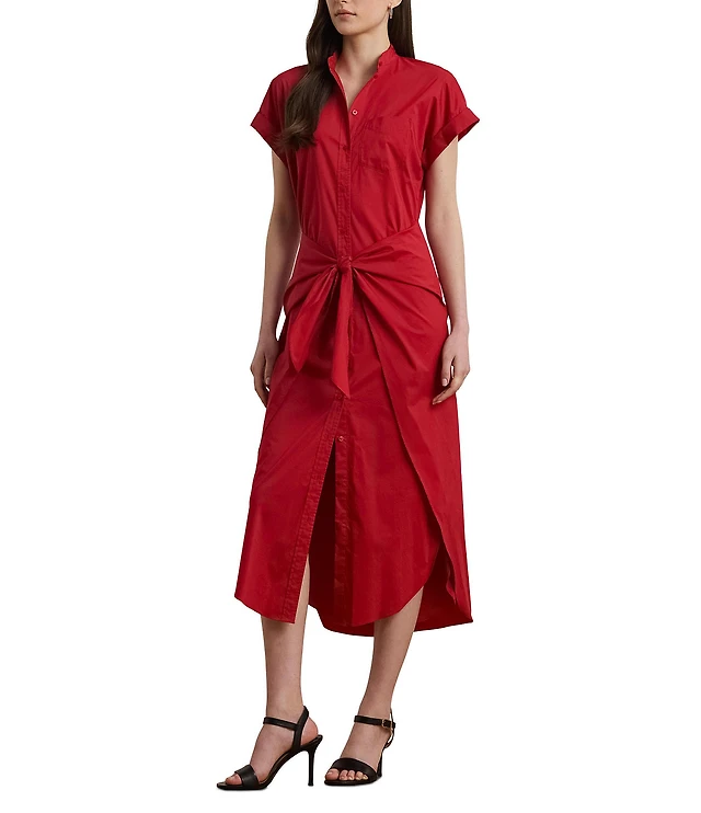 Lauren Ralph Lauren Cotton-Blend Point Collar Elbow Sleeve Belted Shirt Dress