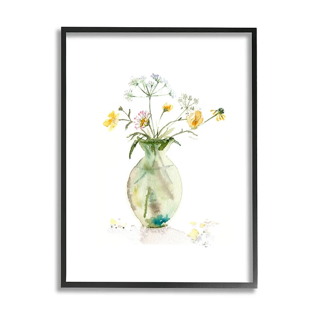Stupell Industries Lotus and Palm Plant in Rock Vase Still-Life in Frame Wall Art