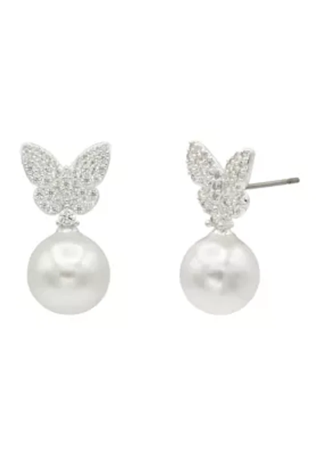 Lab Created Pearl & Gemstone Bow Drop Earrings