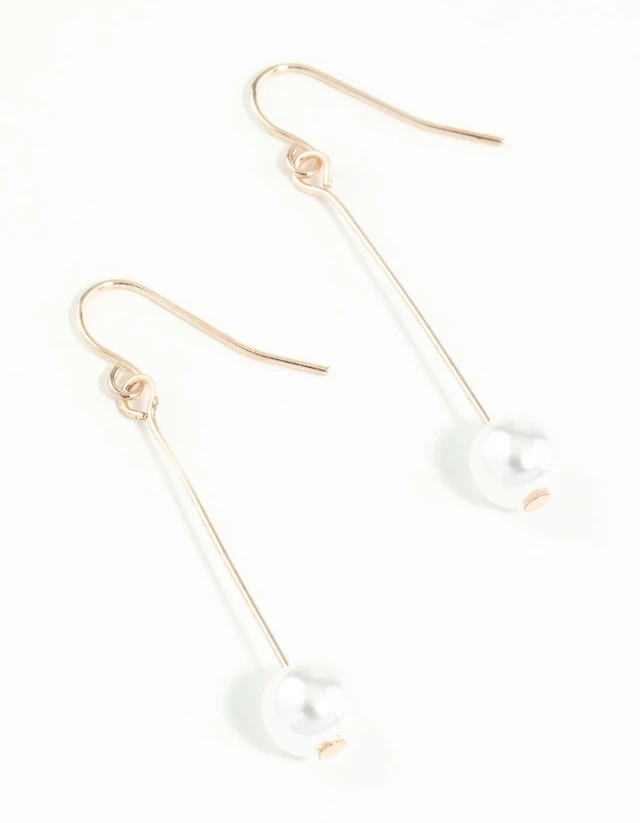 Rose Gold Fine Stick & Pearl Drop Earrings