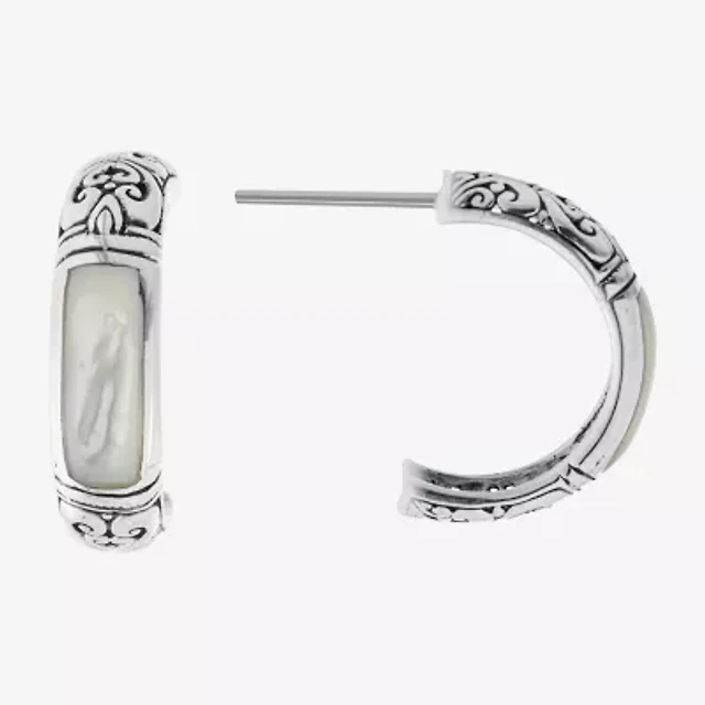 Cultured Pearl J-Hoop Earrings Sterling Silver