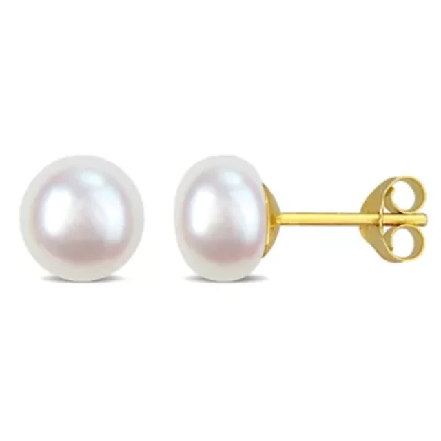 Child's Button Freshwater Cultured Pearl Frame Stud Earrings in 10K Gold