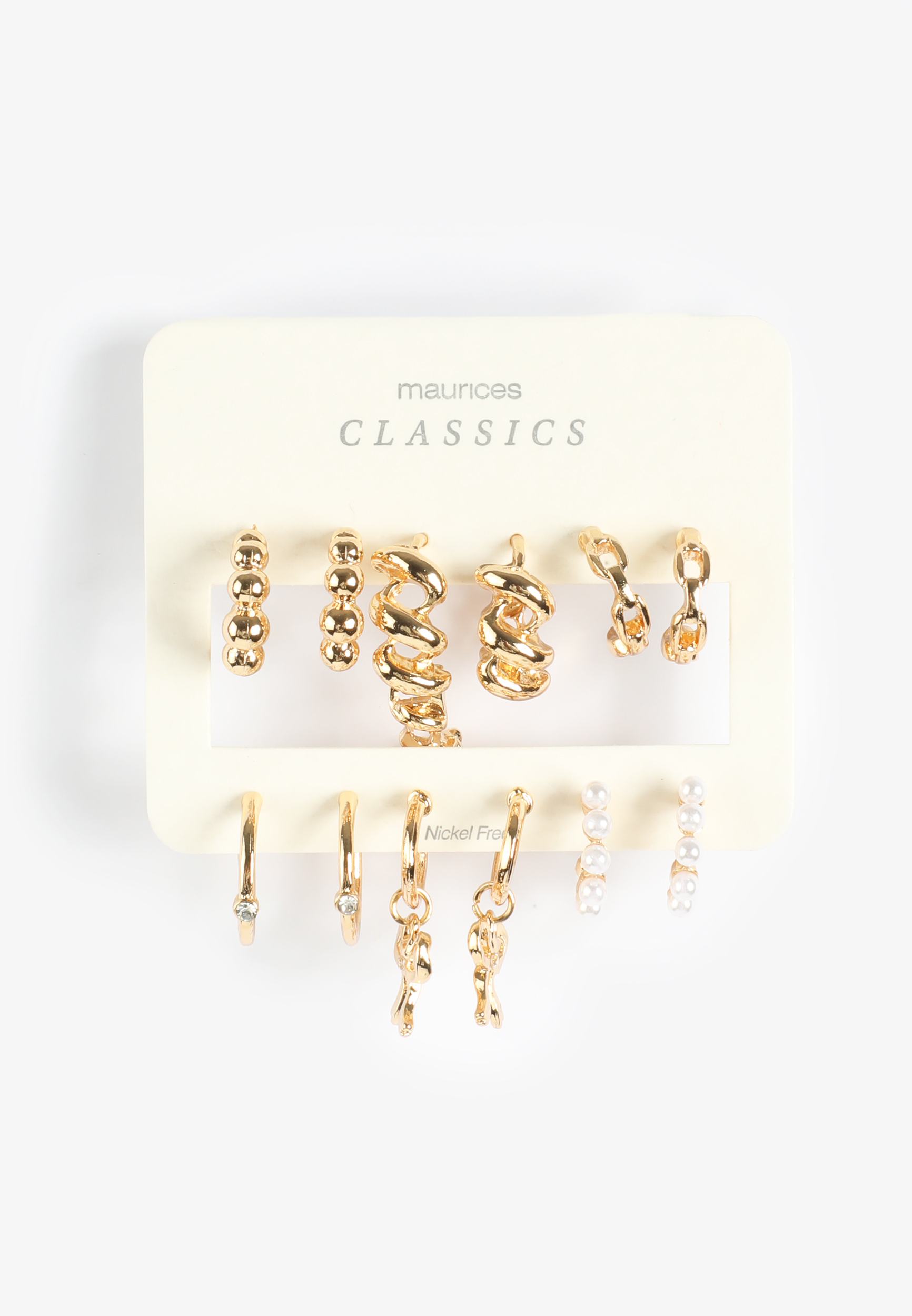 Pearl + Gold Hoops & Stud Earrings 6-Pair Set