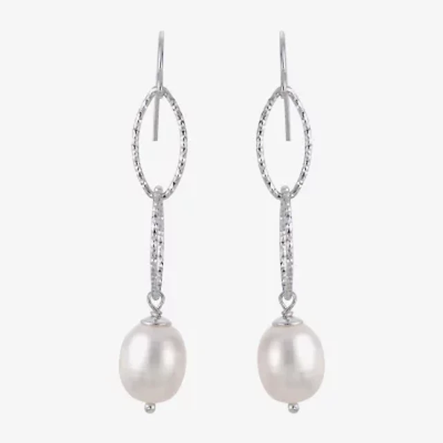 Silver Treasures Womens White Cultured Freshwater Pearl Sterling Silver Drop Earrings