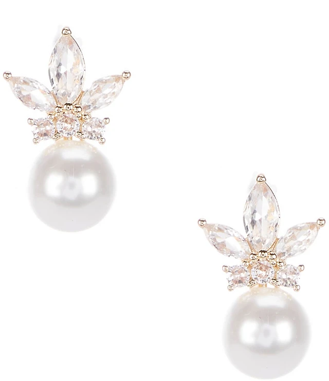 Southern Living x Borrowed & Blue Pearl & Crystal Stone Delicate Open Metal Drop Earrings