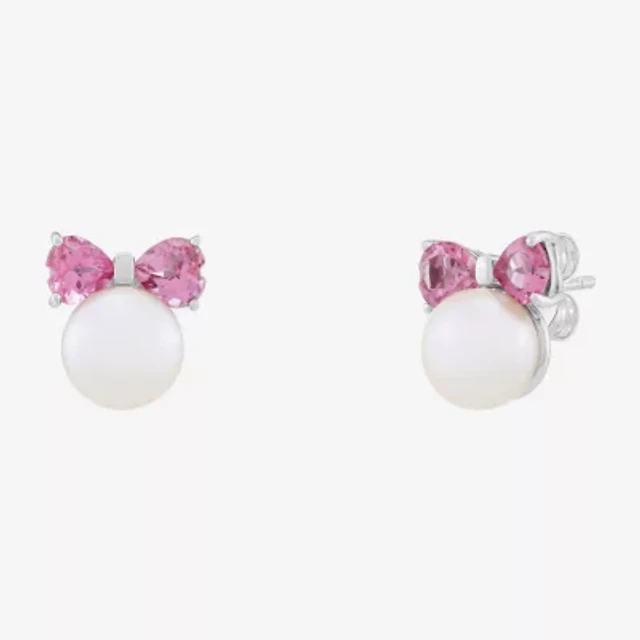 Womens Freshwater Pearl & Lab-Created White Sapphire Sterling SIlver Earrings