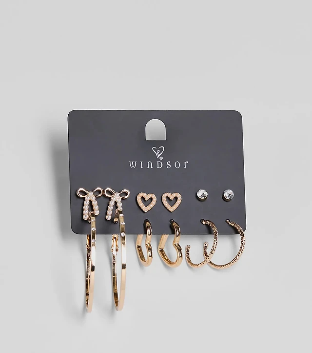 Gold Heart & Bow Stud & Hoop Earrings 12-Pack