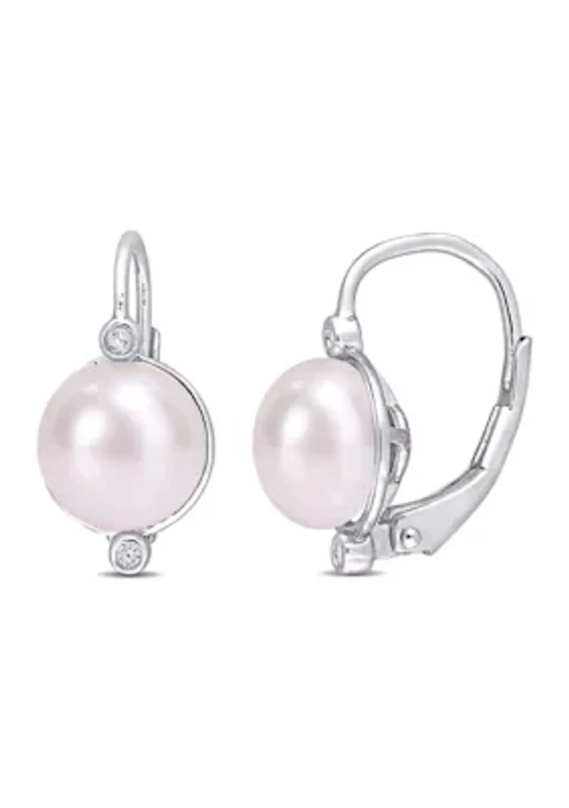 7.5-8mm Freshwater Cultured Pearl and Diamond Accent Leverback Earrings in Sterling Silver