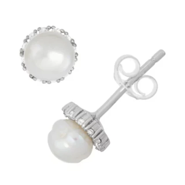 7.0-7.5mm Freshwater Cultured Pearl and White Topaz Stud Earrings in 10K Gold