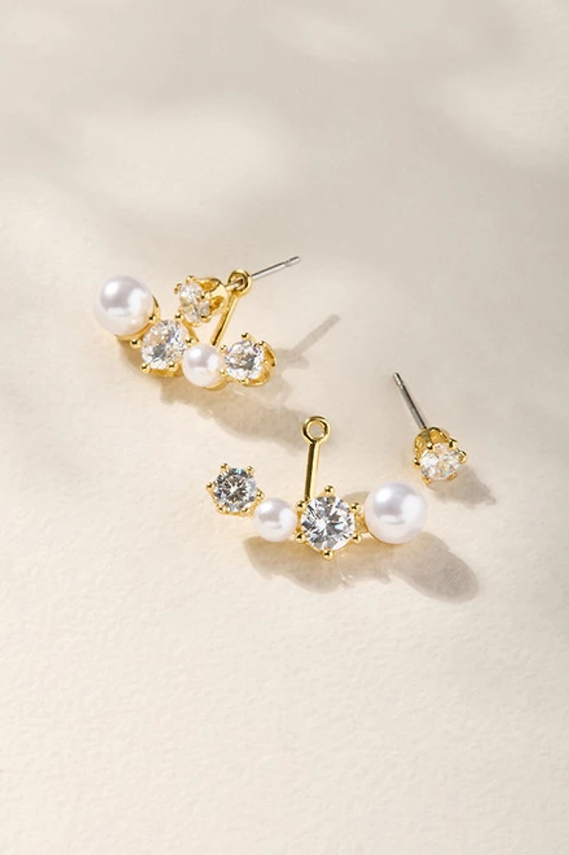 Child's 2.5mm Freshwater Cultured Pearl and Cubic Zirconia Drop Earrings in 14K Gold