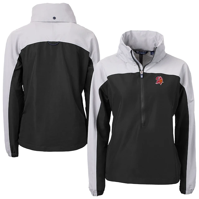 Women's Cutter & Buck Black San Francisco 49ers Charter Eco Recycled Half-Zip Hooded Anorak Jacket