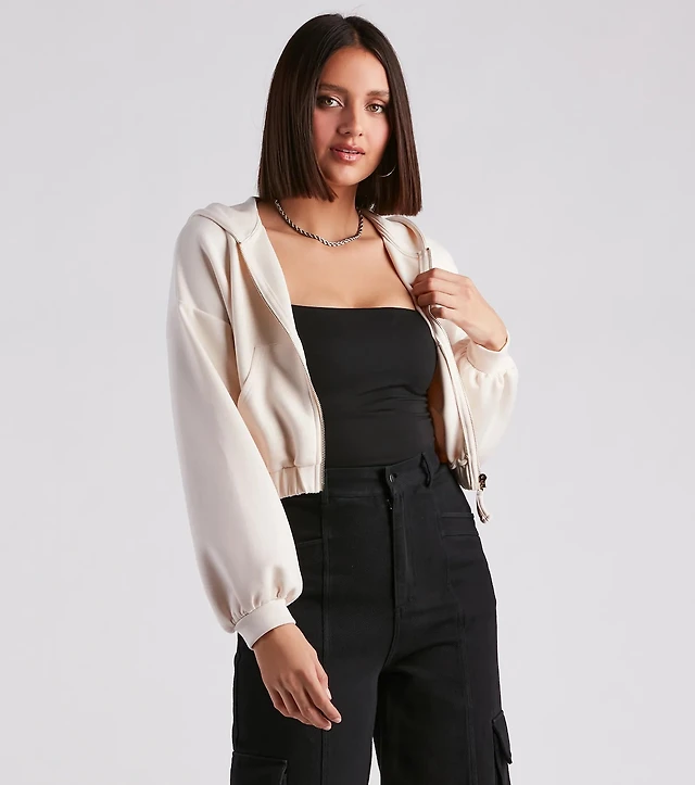 Off Duty Babe Luxe Zip-Up Crop Hoodie