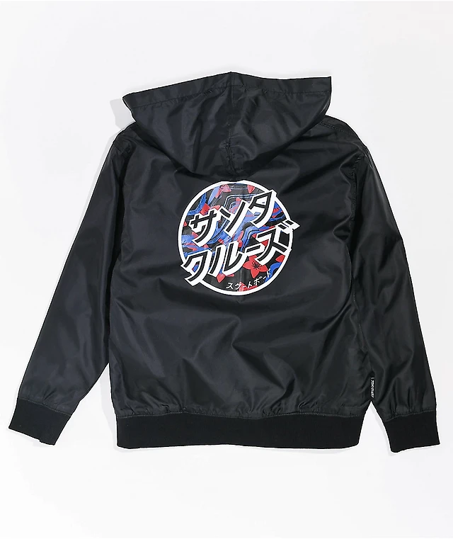 Santa Cruz Kids' Japan Dot Black Hooded Windbreaker Jacket
