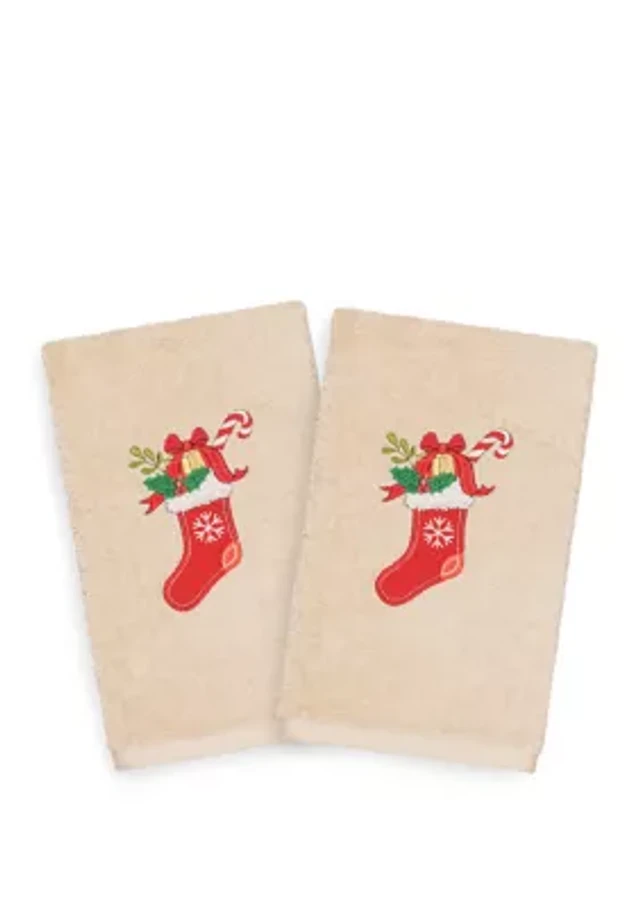Christmas Joy Embroidered Luxury Turkish Cotton Hand Towel Set of 2
