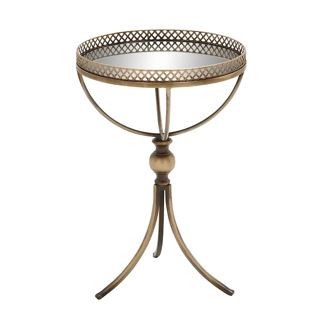 24" Brass Iron Traditional Accent Table