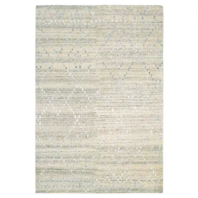 Cream Diamond Tassel Wool Area Rug