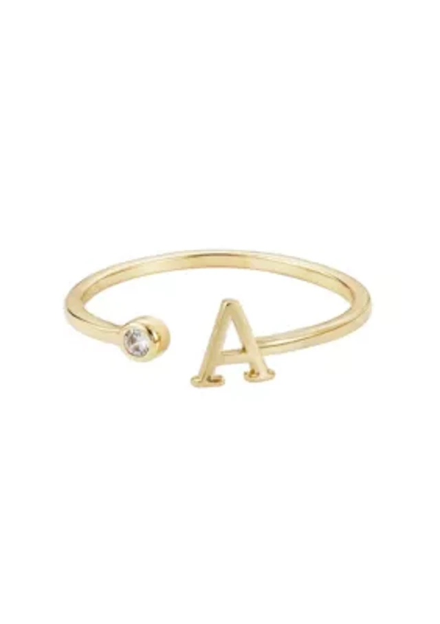 14k Gold Plated Adjustable CZ Initial Ring