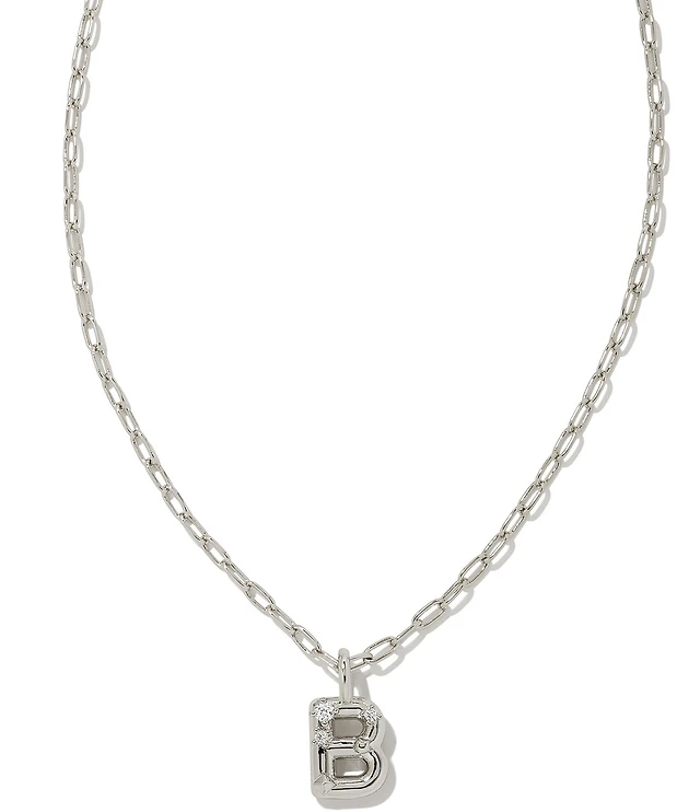 Kendra Scott Crystal Initial Letter Silver Short Pendant Necklace