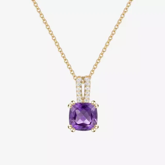 (I-J/I2-I3) Womens Diamond Accent and Gemstone 10K Gold Cushion 18 Inch Pendant Necklace