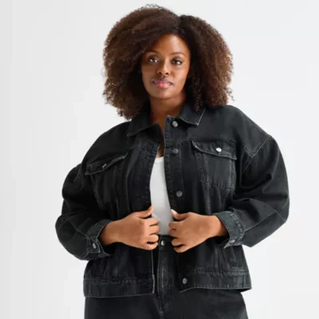 JS Jessica Simpson Womens Plus Denim Embroidered Lightweight Jacket
