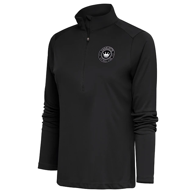 Women's Antigua Charcoal Charlotte FC Brushed Metallic Logo Tribute Half-Zip Top