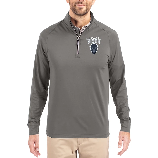 Men's Cutter & Buck Gray Howard Bison Primary Logo Adapt Eco Knit Stretch Raglan Quarter-Zip Pullover