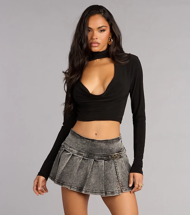 Low-Rise Utility Micro Denim Skirt
