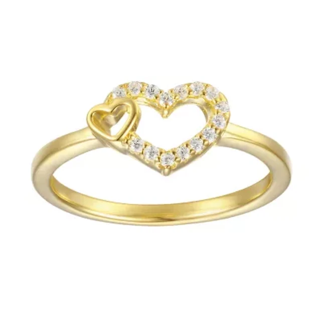 7mm Heart-Shaped Cubic Zirconia Frame Ring in Sterling Silver with 18K Gold Plate - Size 7